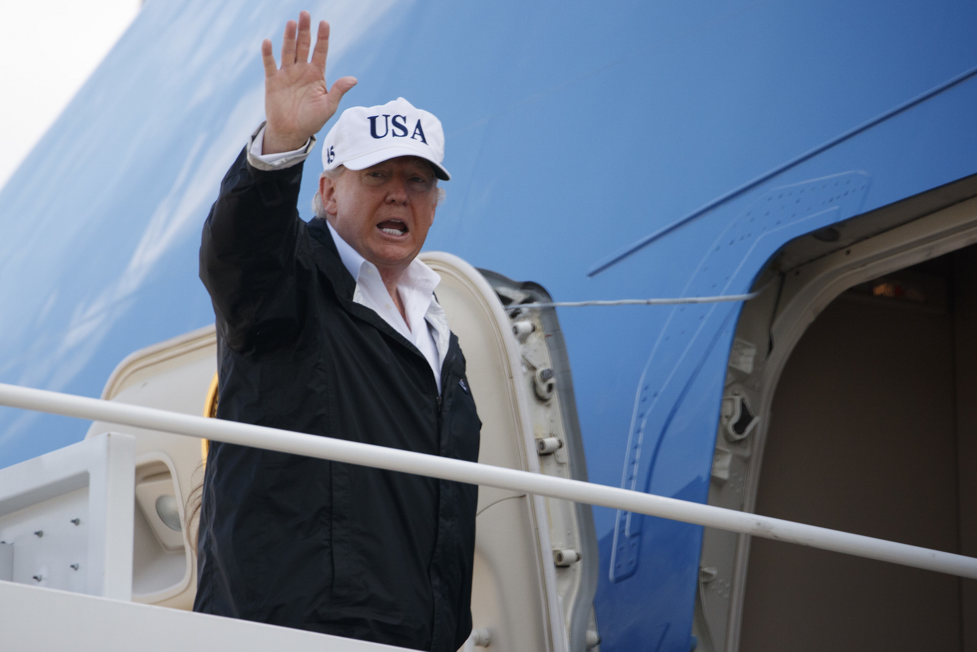 الرئيس الأمريكي دونالد ترامب يلوح بيده اثناء صعوده طائرته الخاصة في قاعدة أندروز الجوية في ولاية ماريلاند، 14 أيلول/سبتمبر. (صورة أسوشيتدبرس/ايفان فوجي)