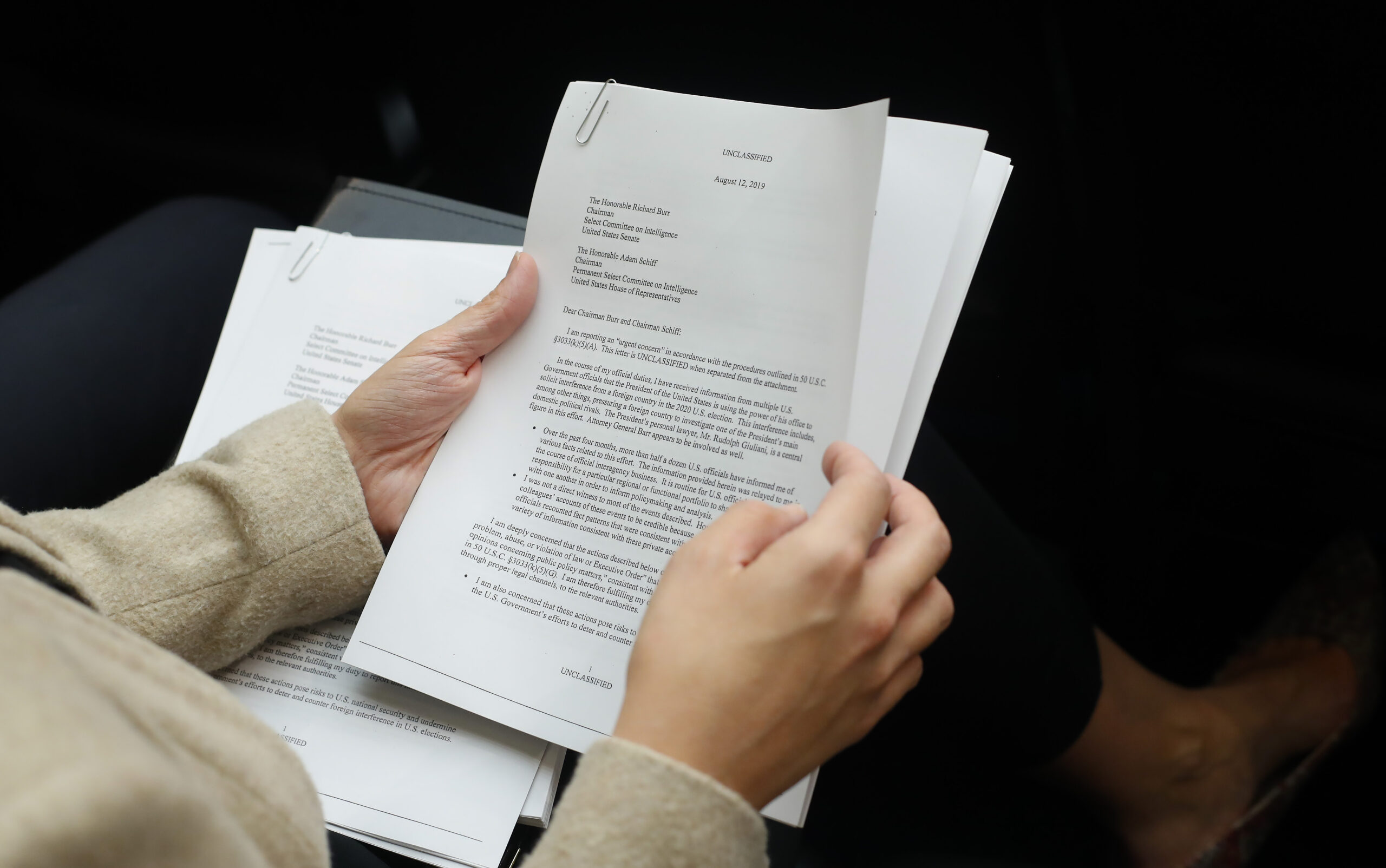 وبدأ عالم الرئيس ترامب بالتضعضع بعد أن اضطر، نتيجة لضغوط الجمهوريين عليه إلى نزع السرية عن نص المكالمة مع الرئيس زيلينسكي. وهذا بدوره اقنع الرئيس المؤقت لجهاز الاستخبارات الوطني جوزف مغواير لنزع السرية عن شكوى الموظف الاستخباراتي المكتوبة بدقة ومهنية عالية عكست القدرة التحليلية لكاتبها. ردود الفعل على الوثيقتين، بمعظمها كانت سلبية للرئيس ولانصاره. ردود الفعل في البيت الأبيض على الانتقادات وارتفاع أصوات المطالبين بالمحاكمة تراوحت بين النكران، وهذا هو وطن الرئيس ترامب، وفقا لمصادر مسؤولة، وبين من دعا إلى تشكيل فريق رد سريع على الاتهامات التي ستتفاقم مع اقتراب الانتخابات. ولجأ ترامب إلى أسلوب الهجوم الشرس كأسلوب الدفاع الوحيد الذي يجيده، وشكك بصدقية موظف السي آي إي، كما هاجم آدم شيف رئيس لجنة الاستخبارات.