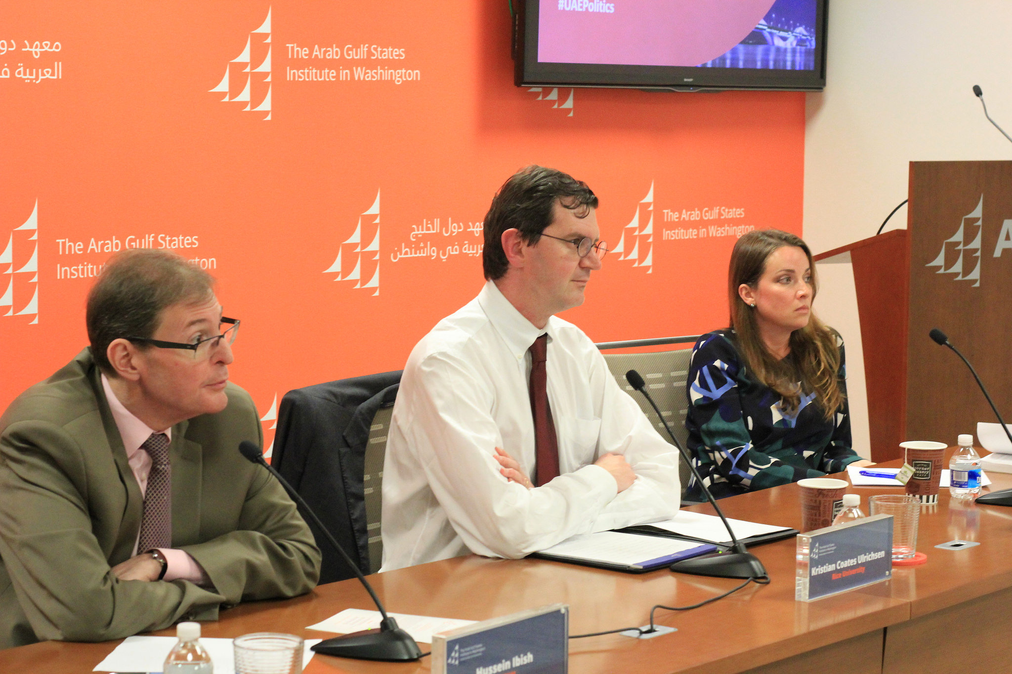 AGSIW was pleased to host a panel discussion with Kristian Coates Ulrichsen, author of The United Arab Emirates: Power, Politics and Policy-Making. AGSIW Senior Resident Scholar Karen E. Young served as discussant and Senior Resident Scholar Hussein Ibish moderated the panel.